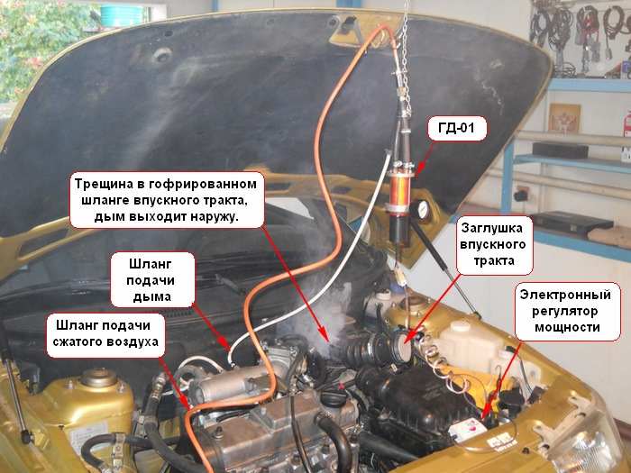 Проверка системы впуска двигателя на подсос воздуха с помощью дымогенератора — метод диагностики, который позволяет выявить места утечки воздуха в впускном тракте. Это помогает обнаружить подсос воздуха, который приводит к обеднению топливной смеси и неправильной её образованию.
